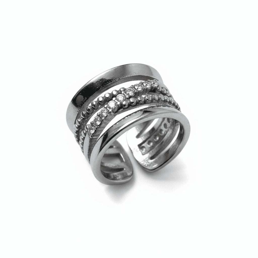 Anel Ajustável Multibanda em Aço Inoxidável com Zircónias