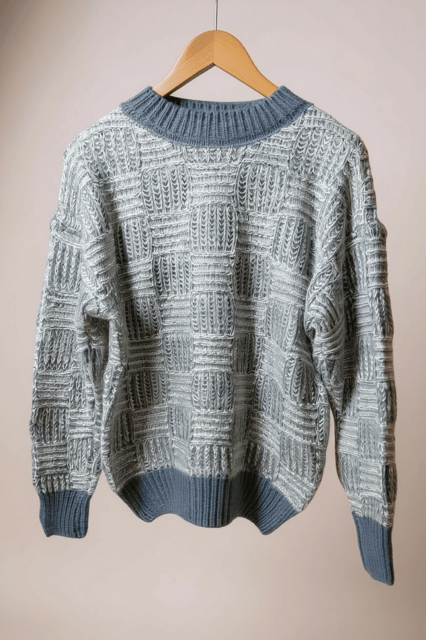 Camisola Malha Entrançada Azul