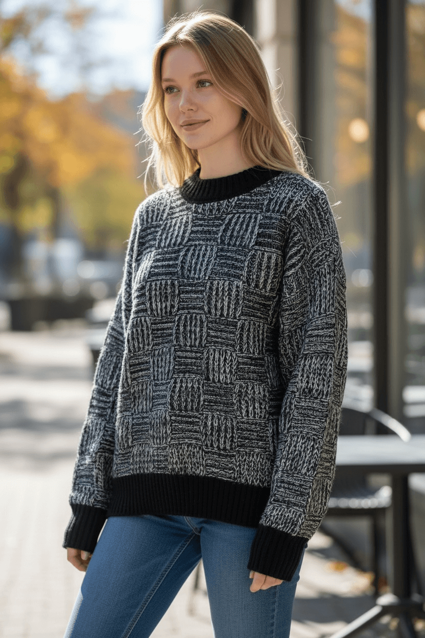 Quantidade de Camisola Malha Entrançada Preta