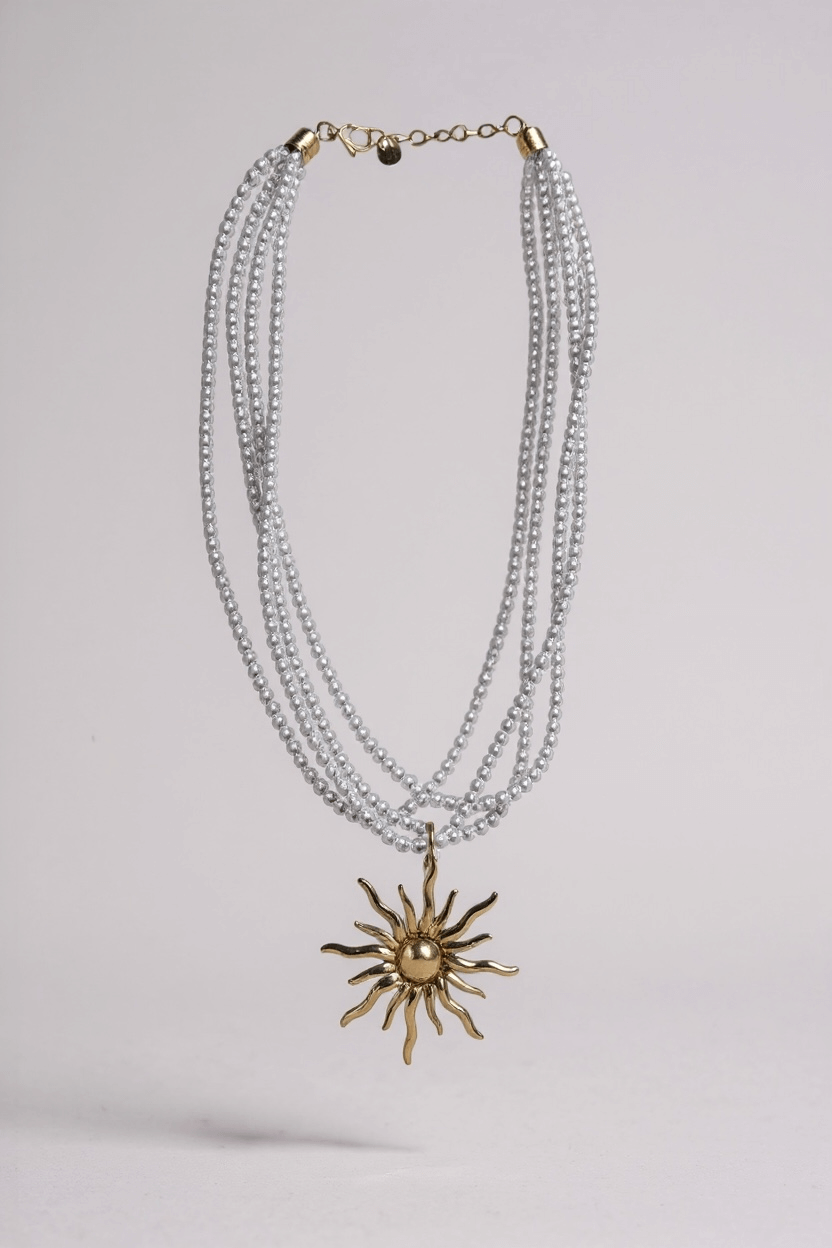 Colar Perolas Sol Dourado